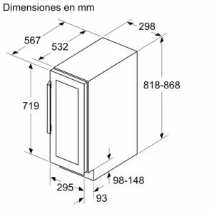 Dimensiones aparato (alto, ancho, fondo (sin incluir la puerta): 818x298x567 mm